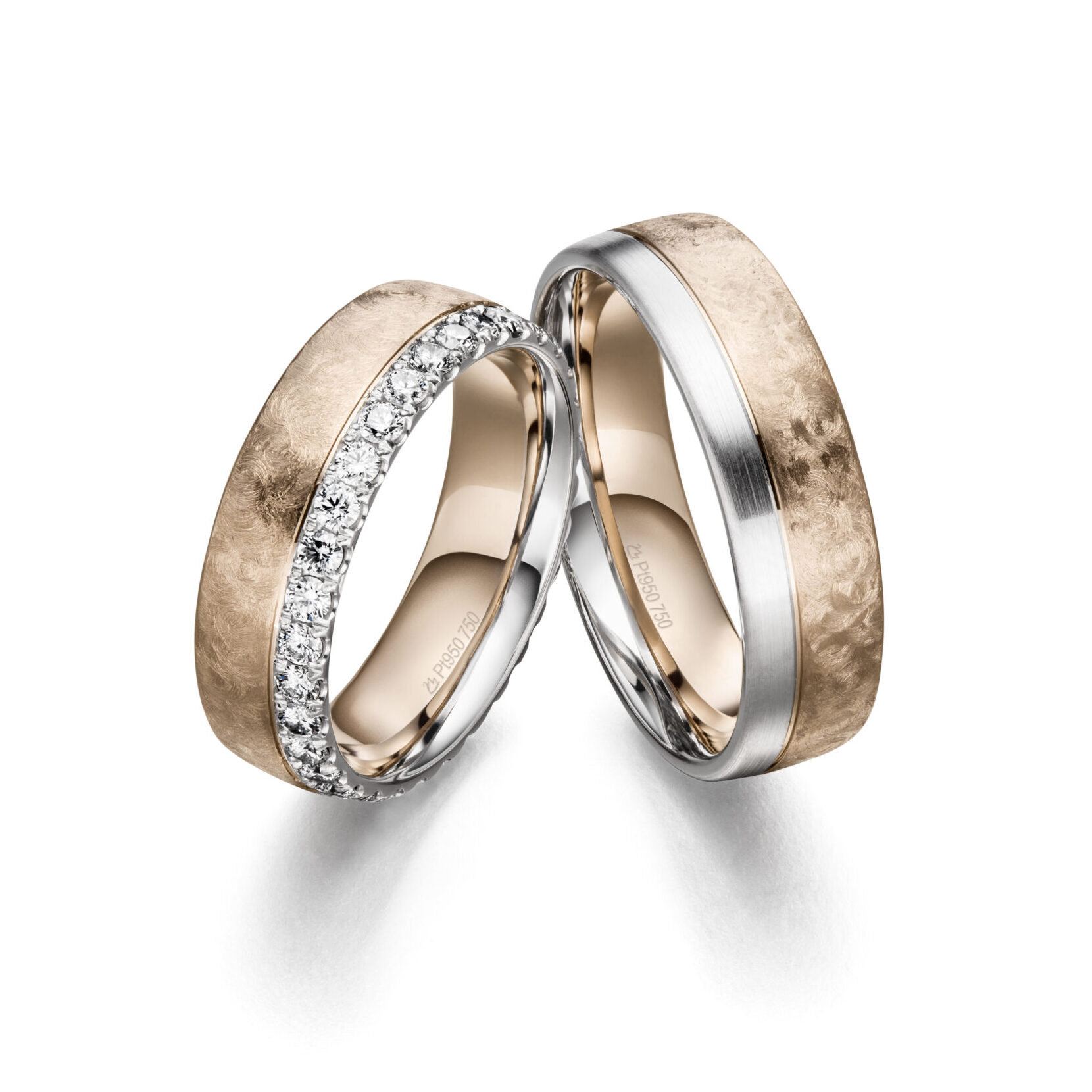 Wählen Sie aus hochwertigen Materialien, stilvollen Ringprofilen, edlen Oberflächen und funkelnden Brillanten. In der realistischen 3D-Ansicht sehen Sie sofort, wie Ihre individuellen Ringe Gestalt annehmen.