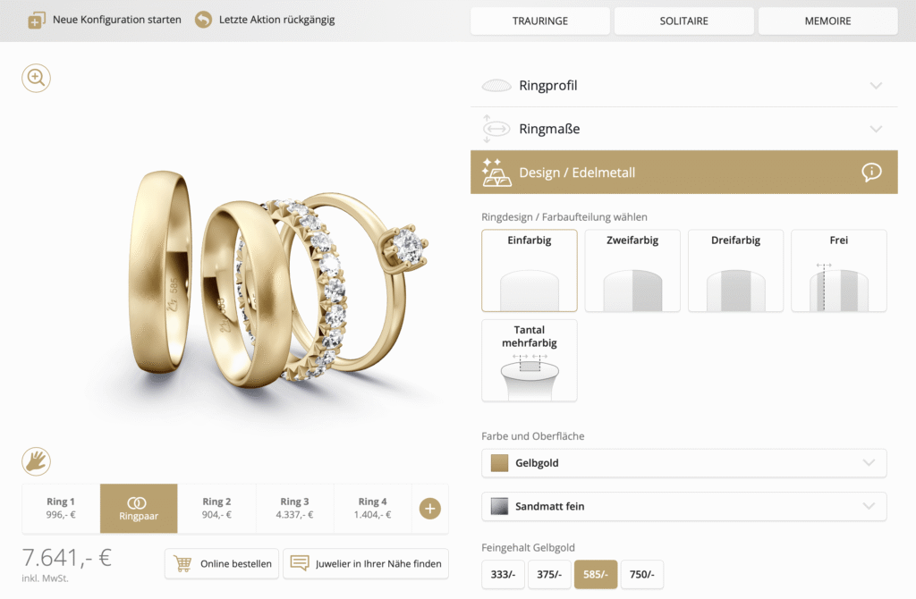 Jetzt neu: Unser Konfigurator ist nicht nur für Trauringe – gestalten Sie ab sofort auch Ihre ganz persönlichen Verlobungsringe und Memorieringe!