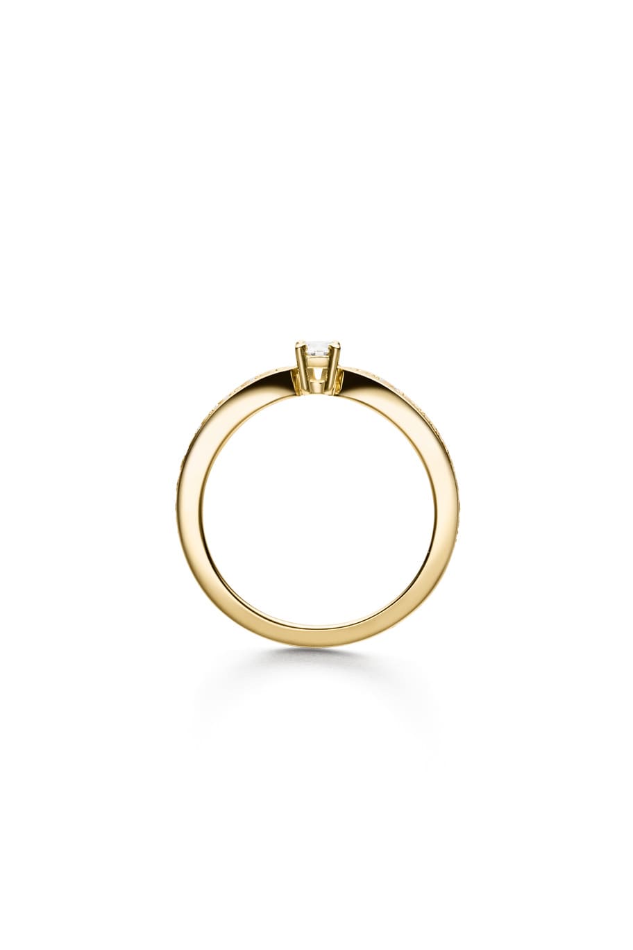 Zudem kann jeder Ring individuell angepasst werden – in der Breite, Stärke ebenso wie beim Steinbesatz, bei der Goldfarbe oder der Oberfläche.
